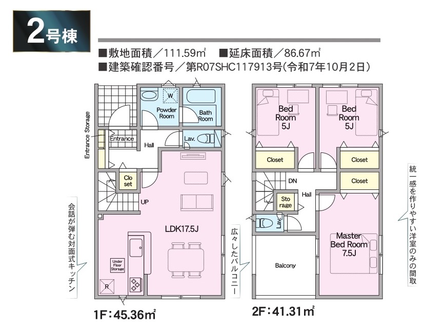 制震構造、高断熱住宅、外壁サイディング、バス1坪以上、24時間換気システム、設計住宅性能評価書あり、建設住宅性能評価書あり、フラット35適合証明書あり、フラット35S適合証明書あり。